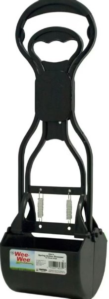 The ideal solution for getting rid of pet waste is any solution that keeps your hands (and nose) at least several feet away. The Four Paws Allen's Spring Action Scooper for Small Dogs only takes up 6 inches of space when hanging on a hook or sitting on a shelf, but quickly snaps together to a length of over two feet. The wide handle offers one-handed operation for the spring-loaded scoop and is perfect for taking on walks around the block.