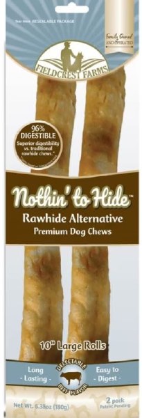 Fieldcrest Farms Nothin' to Hide chews are are highly digestible alternative to rawhide.
