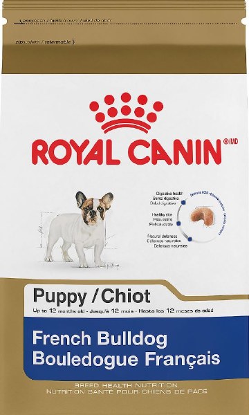 Royal Canin knows what makes your French Bulldog puppy magnificent is in the details. With their pointy bat ears, Frenchies are adorable miniature bulldogs with extremely flat muzzles. They can benefit from the right growth formula to provide immune system support and skin health, and aid with digestion to help cut down on their not-so-adorable gas during puppyhood.&&Royal Canin French Bulldog dry puppy food is tailor-made nutrition created just for your pure breed French Bulldog puppy. This exclusive breed-specific diet is uniquely formulated for your French Bulldog puppy, with the specific nutrients to help them thrive. The customized curved-shaped kibble is specially designed for your French Bulldog's short muzzle and underbite, making it easy for them to pick up and chew. An exclusive mix of antioxidants and vitamin E supports their developing immune system to keep their bodies growing strong. Exclusive nutrients reinforce the skin barrier for healthy skin. And a combination of highly digestible proteins, precise fiber content, and high-quality carbohydrate sources supports healthy digestion to help decrease flatulence and unpleasant stool odors. Once your French Bulldog puppy is over 12 months old, transition them to Royal Canin French Bulldog Adult dry dog food for precise nutrition into their adult years.
