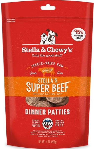 These Stella's Super Beef freeze-dried patties are formulated to mirror a dog’s ancestral diet! There has never been a more convenient way to feed a biologically appropriate raw food diet. We believe dogs deserve to thrive on real, minimally processed food - the way nature intended.